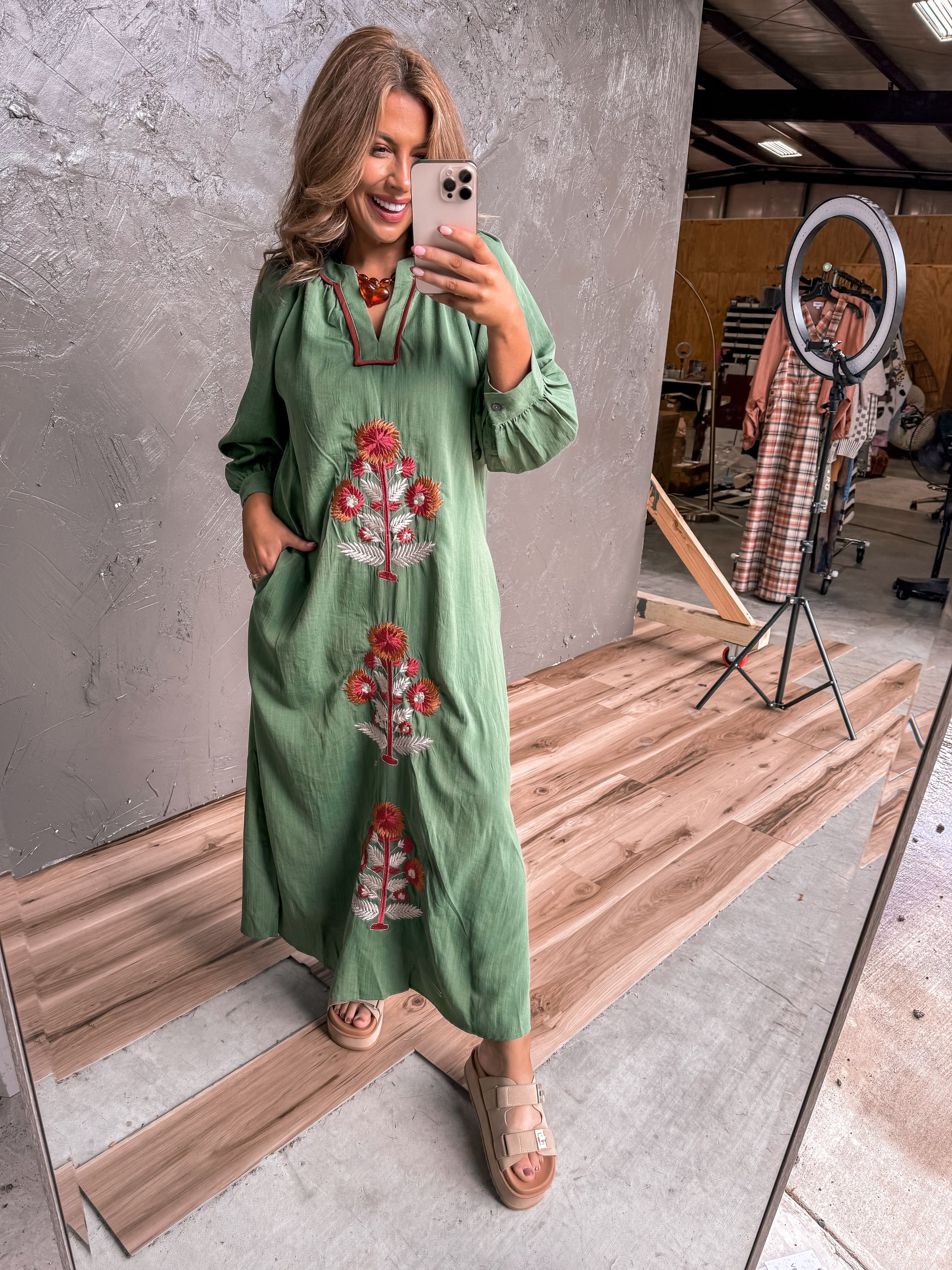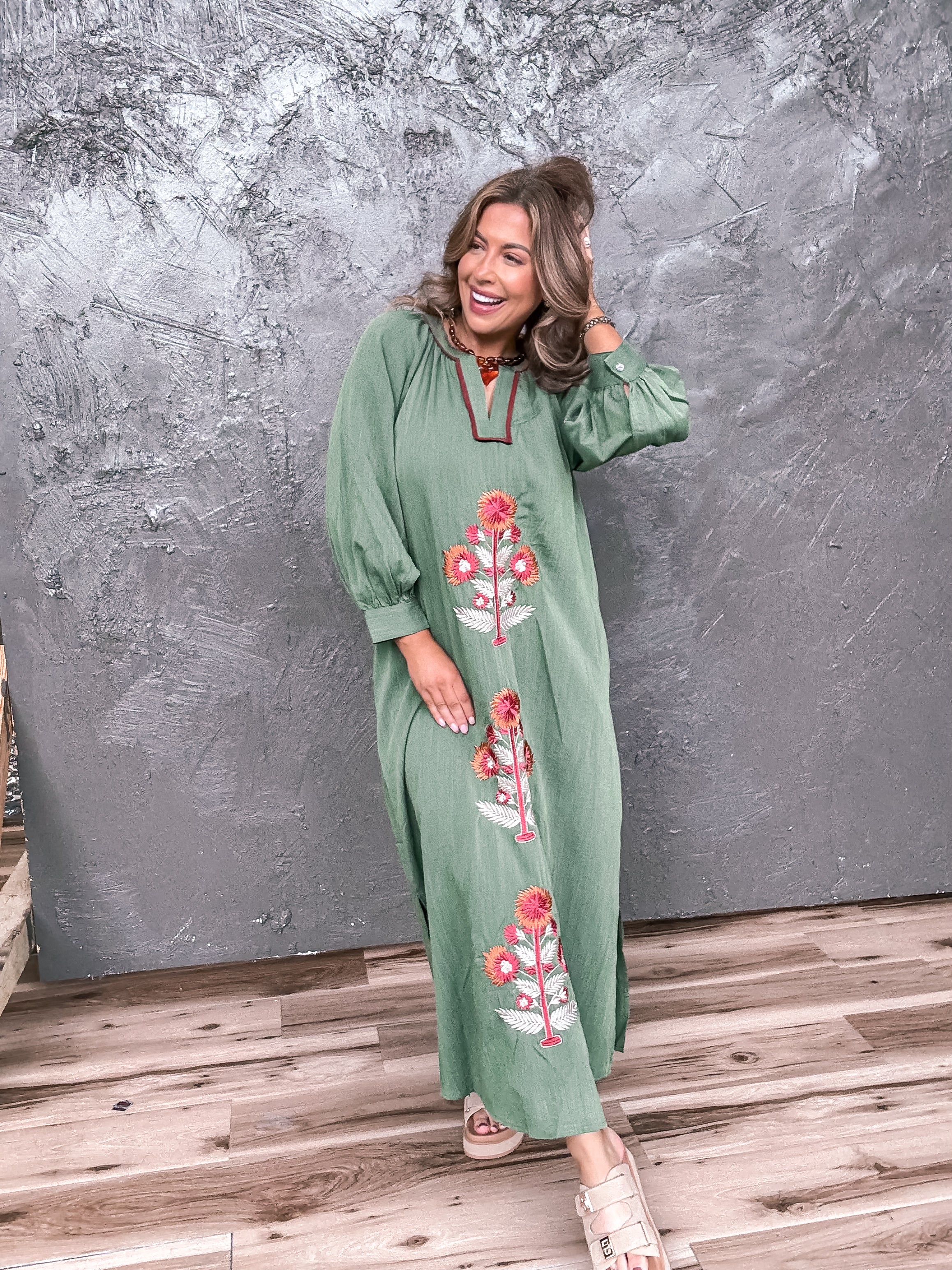 Embrace the charm of fall with the Autumn Breeze Dress, featuring delicate embroidered details that add a touch of whimsy to your look. Light and breezy, this dress moves with you, perfect for twirling through crisp autumn days or cozying up at pumpkin patches. Let the intricate stitching bring a playful sparkle to your wardrobe while keeping you comfy and stylish all season long.