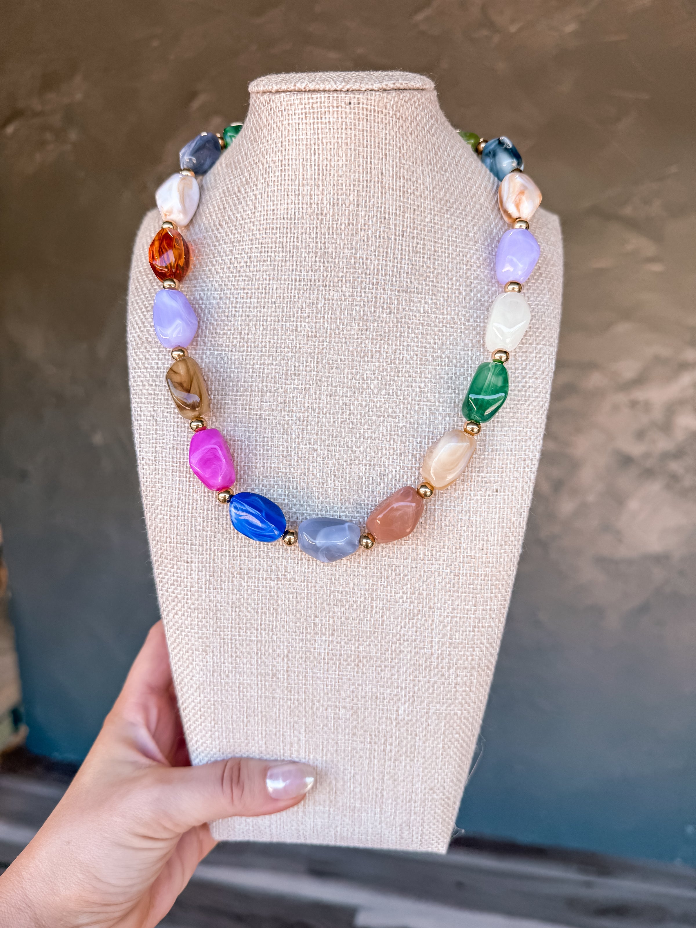 Make a bold statement with this stunning Color Love Stone Necklace! Featuring a gorgeous oversized stone pendant that catches the light beautifully, this playful piece brings instant personality to any outfit. Whether you're dressing up for a special occasion or adding flair to your everyday look, this eye-catching necklace is your go-to accessory. The substantial stone creates a striking focal point that pairs perfectly with both casual and dressed-up styles. Wear it, love it, and let your unique style shine through!