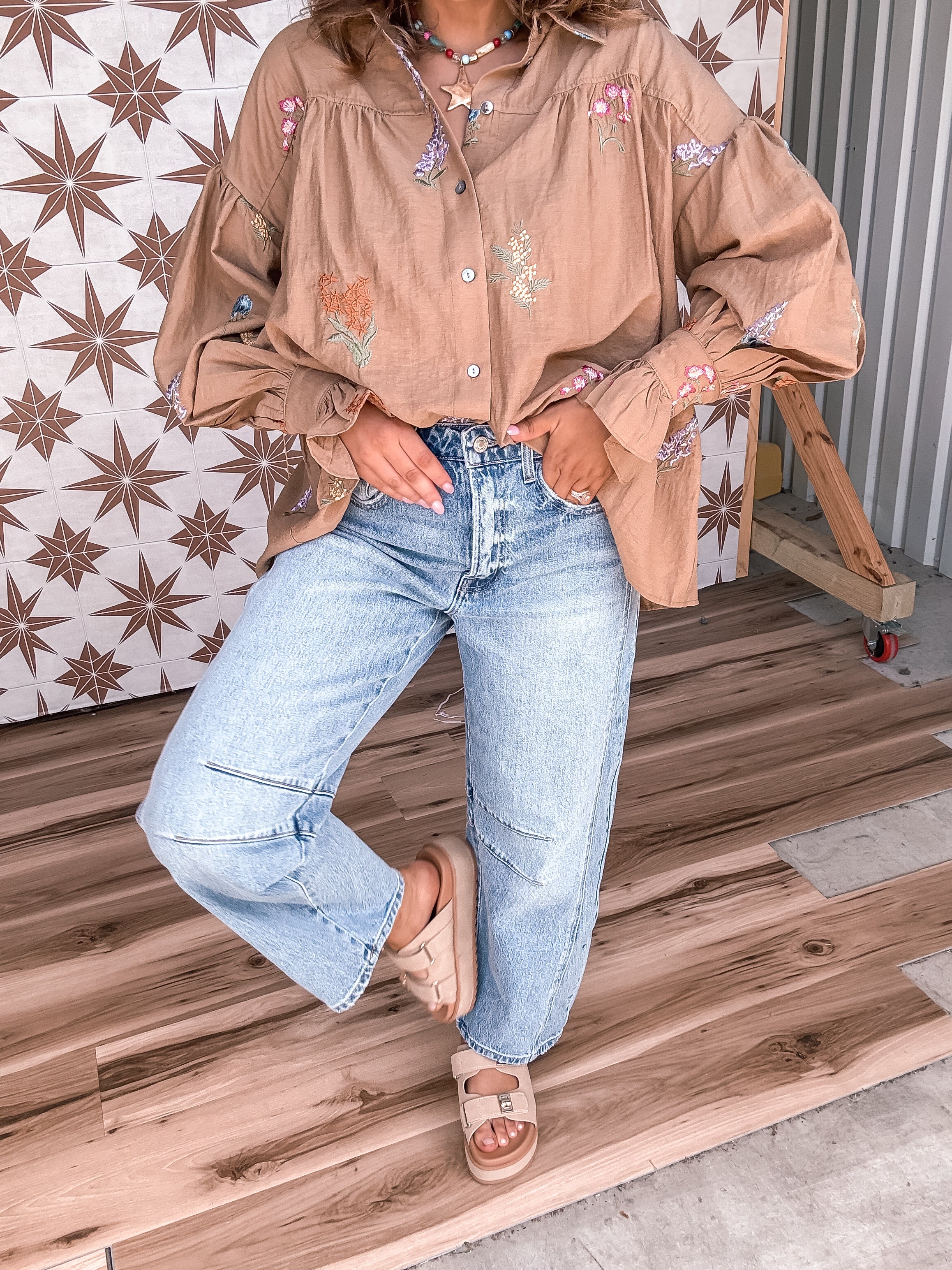 - Step out in style with the Chic In The City Barrel jeans! Featuring a trendy medium wash and flattering barrel-leg cut, these jeans bring effortless cool to any outfit. Perfect for playful days or casual nights, they combine comfort with a fresh, fashion-forward vibe. Elevate your everyday look with jeans that are anything but basic.