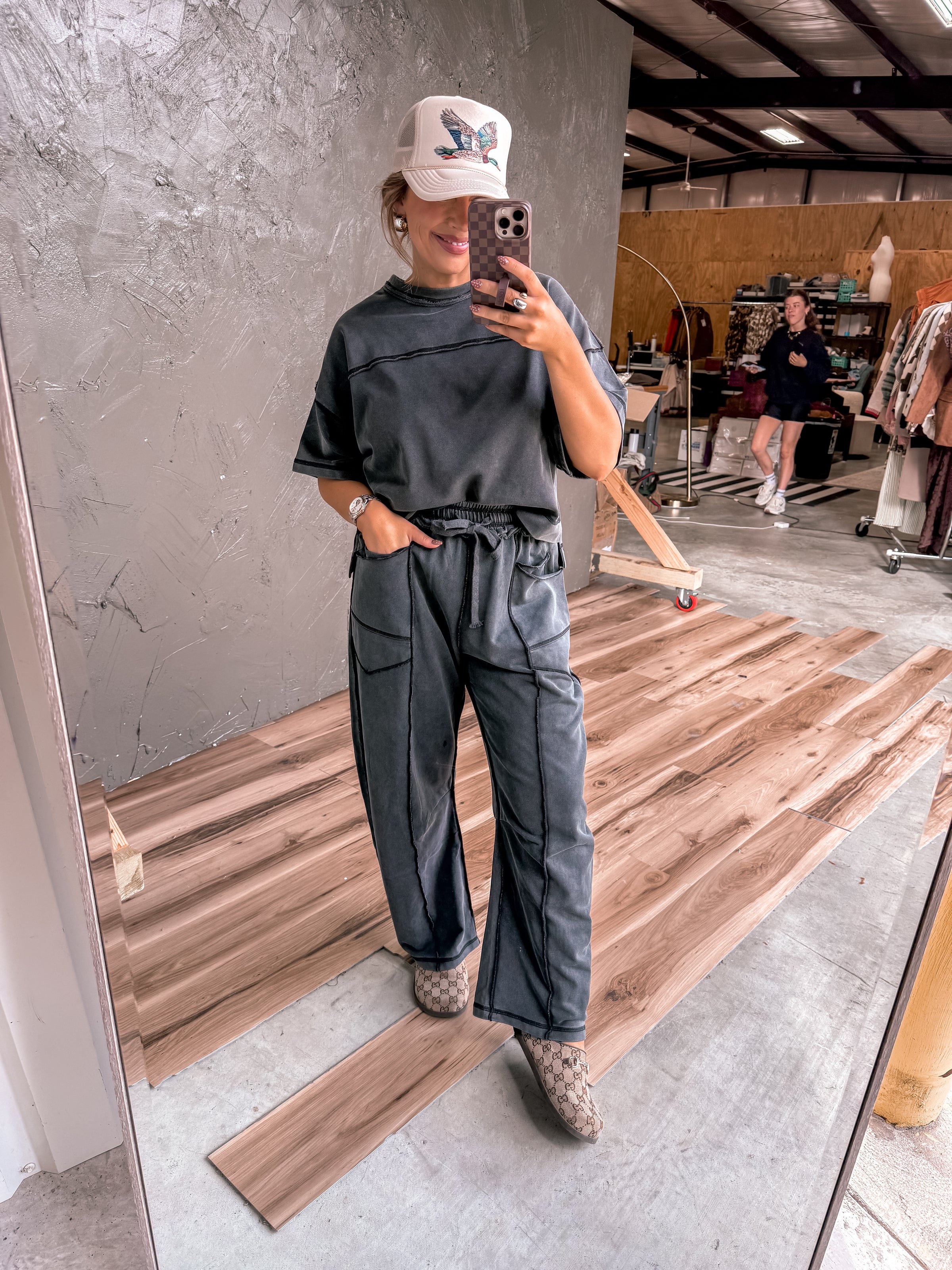 Step into the night with effortless style in this edgy Into The Night Jumpsuit. Featuring a striking black mineral wash that gives off moody, mysterious vibes, this one-piece wonder pairs comfort with attitude. The barrel bottom cut adds a fun, fashion-forward twist that keeps things fresh and unexpected. Perfect for nights out, casual hangouts, or whenever you want to make a statement without trying too hard. Slip it on and own the room.