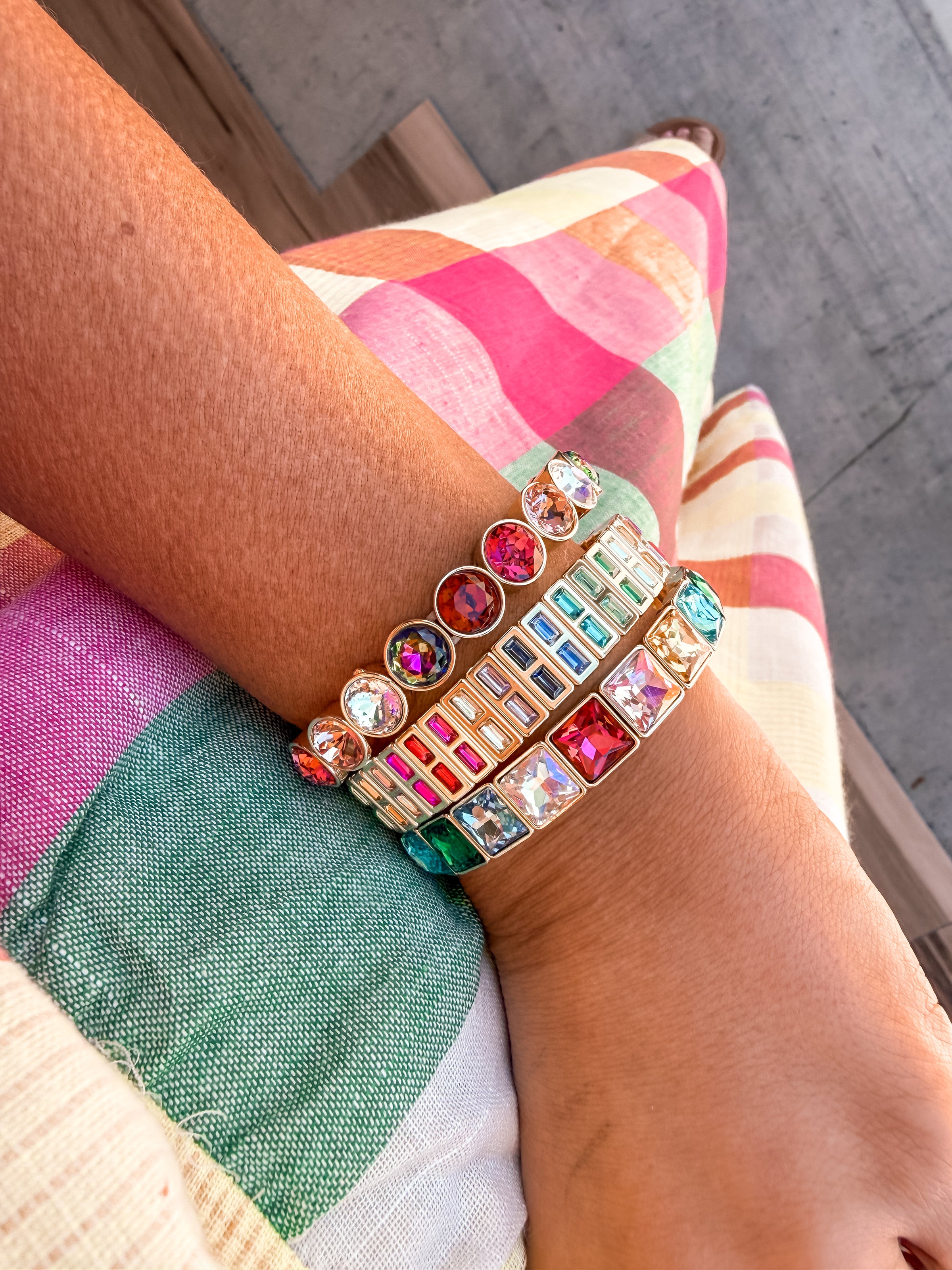 Stack your wrist with vibrant color and endless style! This gorgeous three-piece bracelet set brings the rainbow to your everyday look. Mix, match, and layer these beauties however you like—wear them together for maximum impact or rock them solo when you're feeling minimal. Perfect for adding that pop of personality to any outfit, whether you're heading out for adventure or just living your best life. Colorful, versatile, and totally fun.