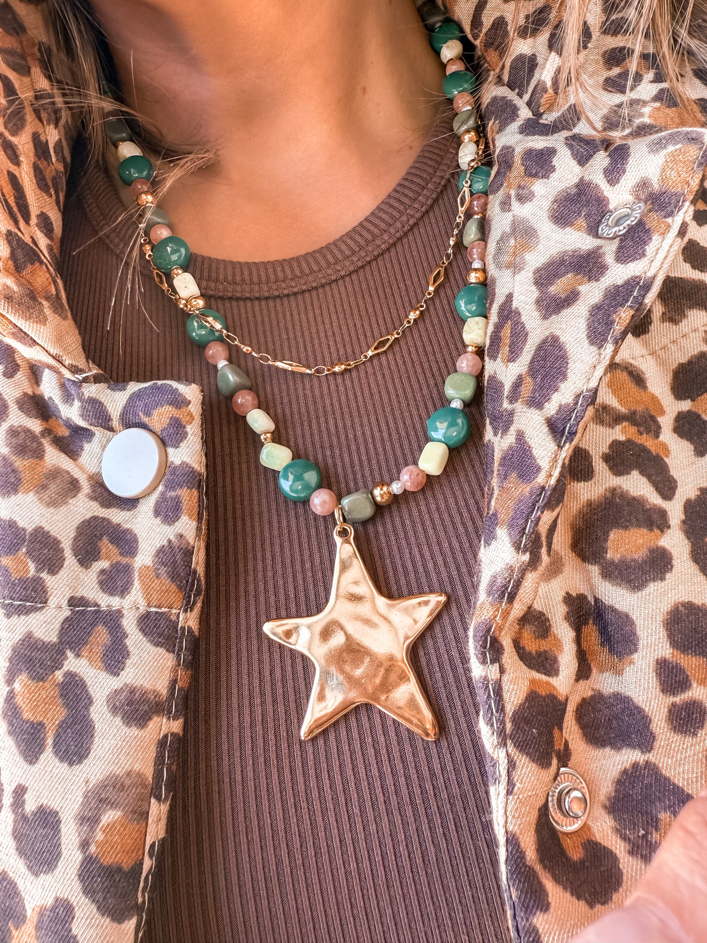 Reach for the stars with this celestial stunner! The Ziggy Star Necklace features multiple shimmering stones arranged in a captivating star design that catches light from every angle. Perfect for adding a touch of cosmic charm to your everyday look or making a statement at special occasions. This playful piece celebrates your inner sparkle and brings a bit of celestial magic to your jewelry collection. Wear it solo for subtle elegance or layer it with other favorites for maximum shimmer.