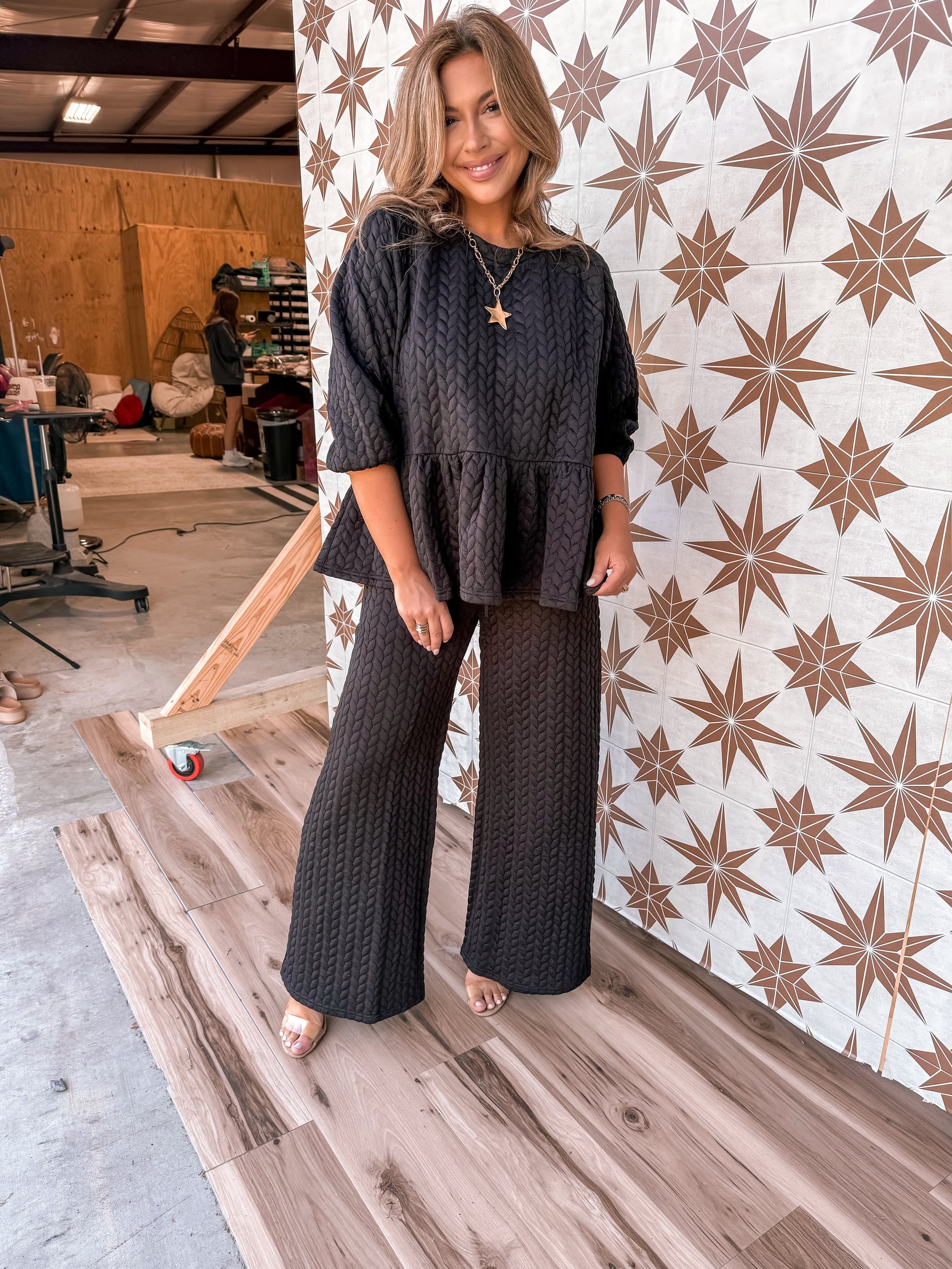 Step into playful charm with the Never Doubt It Quilted Set, featuring a cozy quilted peplum top that adds a flirty flair to your look. Paired with wide pants for effortless comfort and style, this set lets you move freely while turning heads. Perfect for days when you want both comfort and confidence in one coordinated outfit!