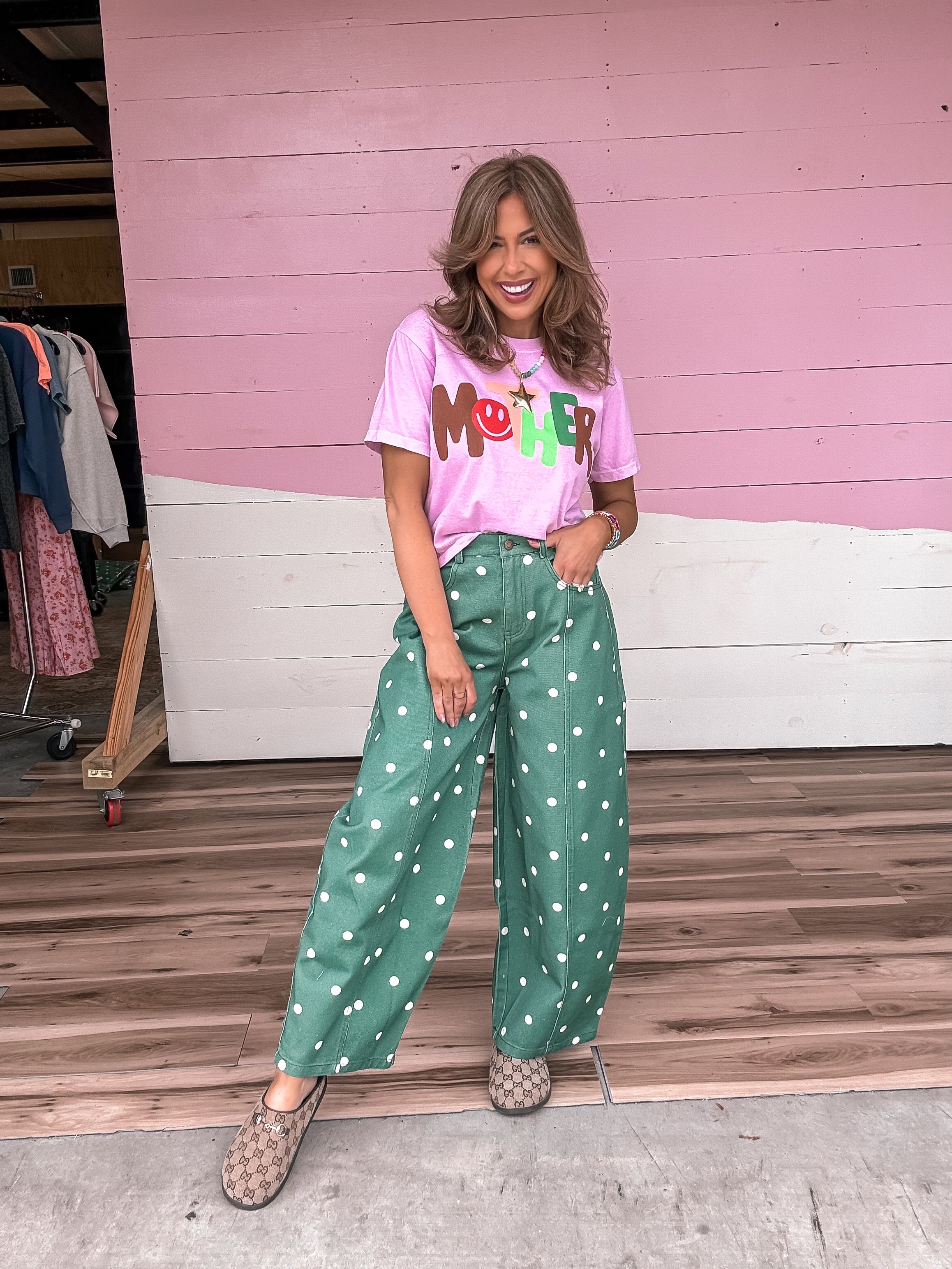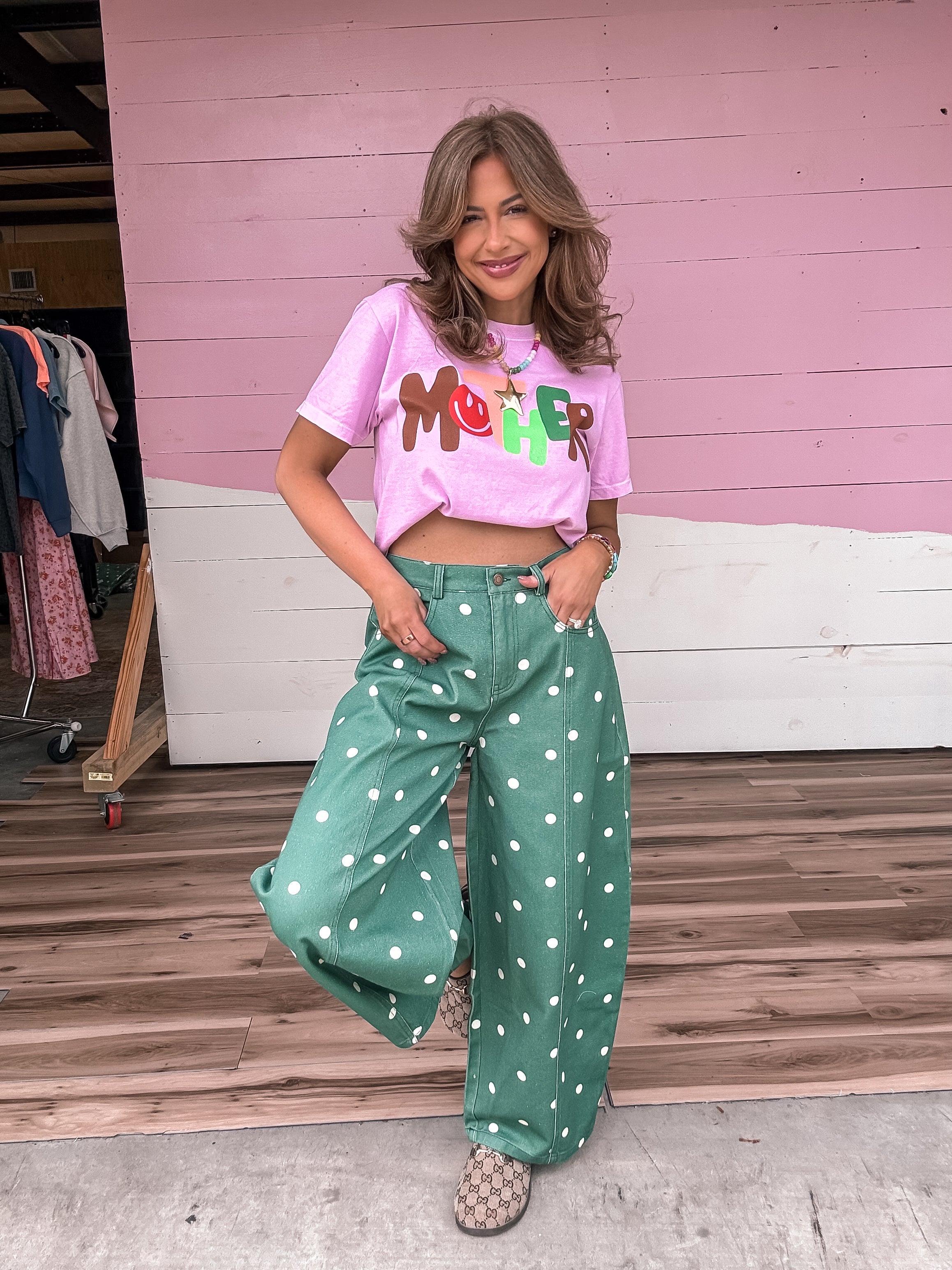 Embrace effortless style with these relaxed fit barrels in a sophisticated hunter green with charming polka dot detailing. Designed for all-day comfort, they feature a loose, flowing silhouette that moves with you. Perfect for casual outings or laid-back weekends, these barrels pair easily with your favorite tops and sneakers. The timeless polka dot pattern adds a playful touch to any wardrobe, making them a versatile staple you'll reach for again and again.