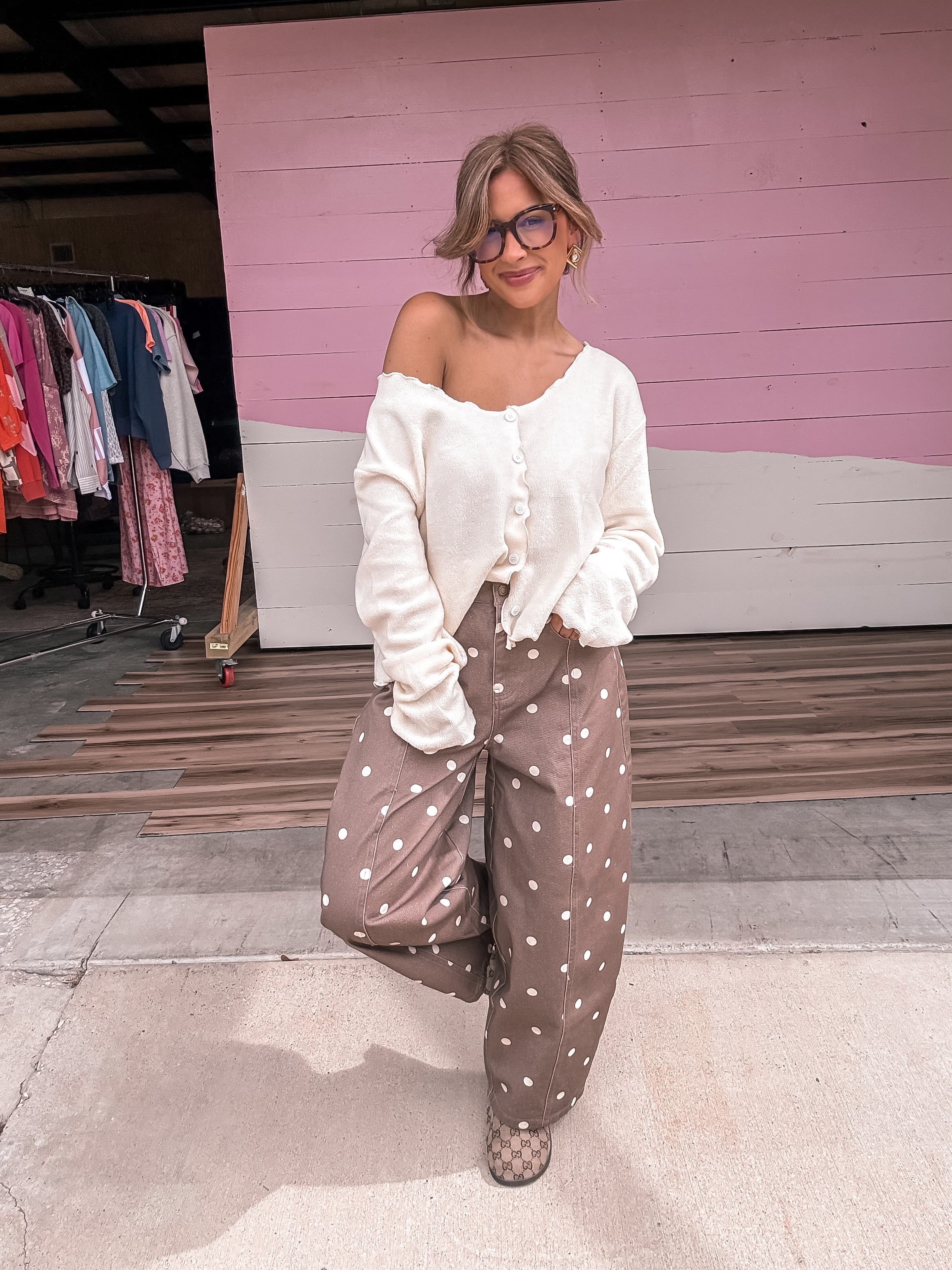 Embrace effortless elegance with this cream scalloped oversized long-sleeve tunic. The delicate scalloped detailing adds a touch of sophistication, while the relaxed fit provides all-day comfort. Perfect for layering or wearing solo, this versatile piece transitions seamlessly from casual outings to weekend gatherings. The soft, neutral cream tone pairs beautifully with any wardrobe staple, making it an essential addition to your collection.