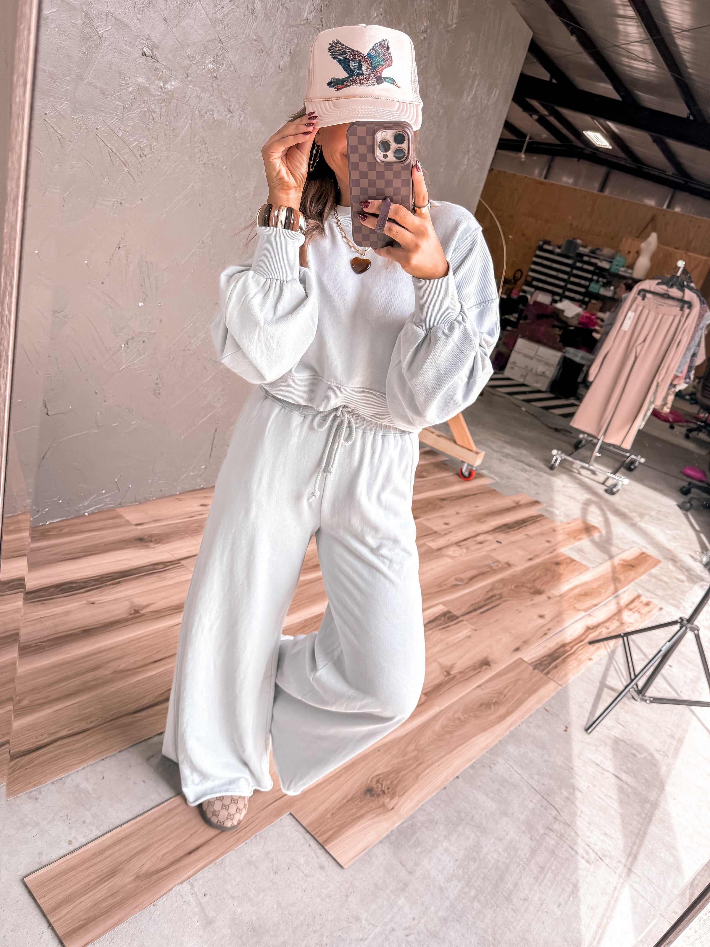 Elevate your everyday style with the Sienna Set in Mist—a bestselling combo that's got you covered. This playful pairing features a cropped top that hits just right, paired with high-waisted pants that cinch at all the right places. Whether you're heading out for brunch or a night on the town, this set delivers effortless confidence and comfort. The soft mist tone keeps things cool and versatile, making it easy to dress up or down. Get the look everyone's been raving about.