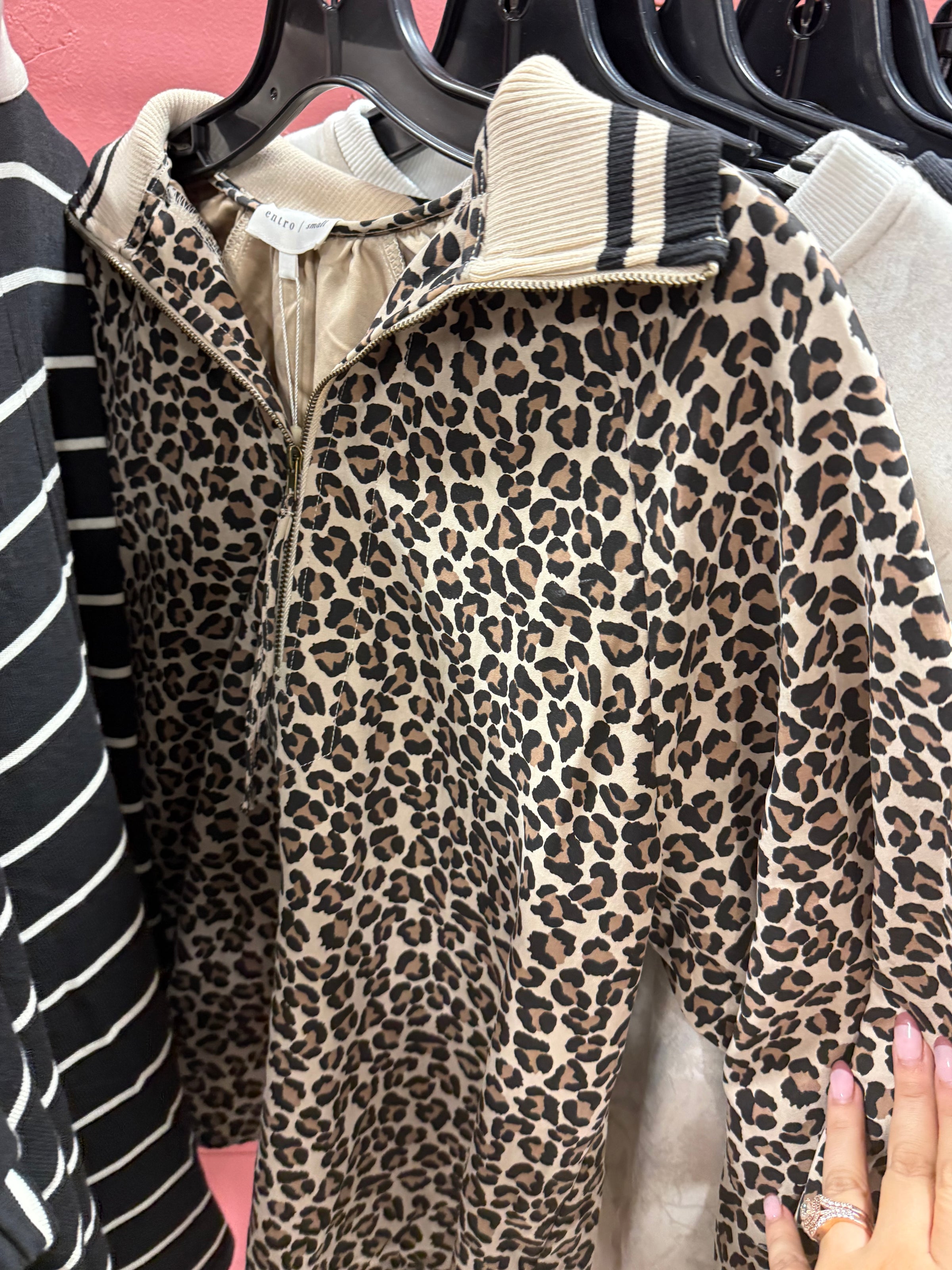 Bring out your wild side with the Stay Sassy Top! This playful piece features a chic leopard print, a trendy collared design, and a convenient half zip for easy wear. Perfect for adding a bold touch to your casual wardrobe while keeping comfort in check. Let your style roar!